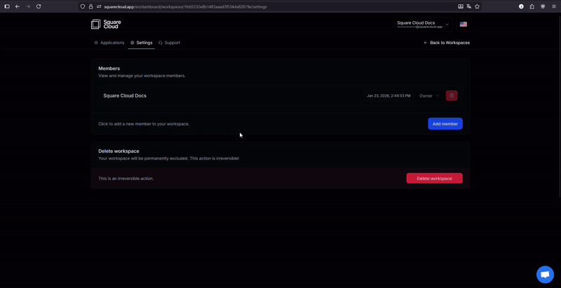 A Workspace in Square Cloud is a collaborative environment where multiple users can work together on projects hosted by the Workspace owner.Prerequisites